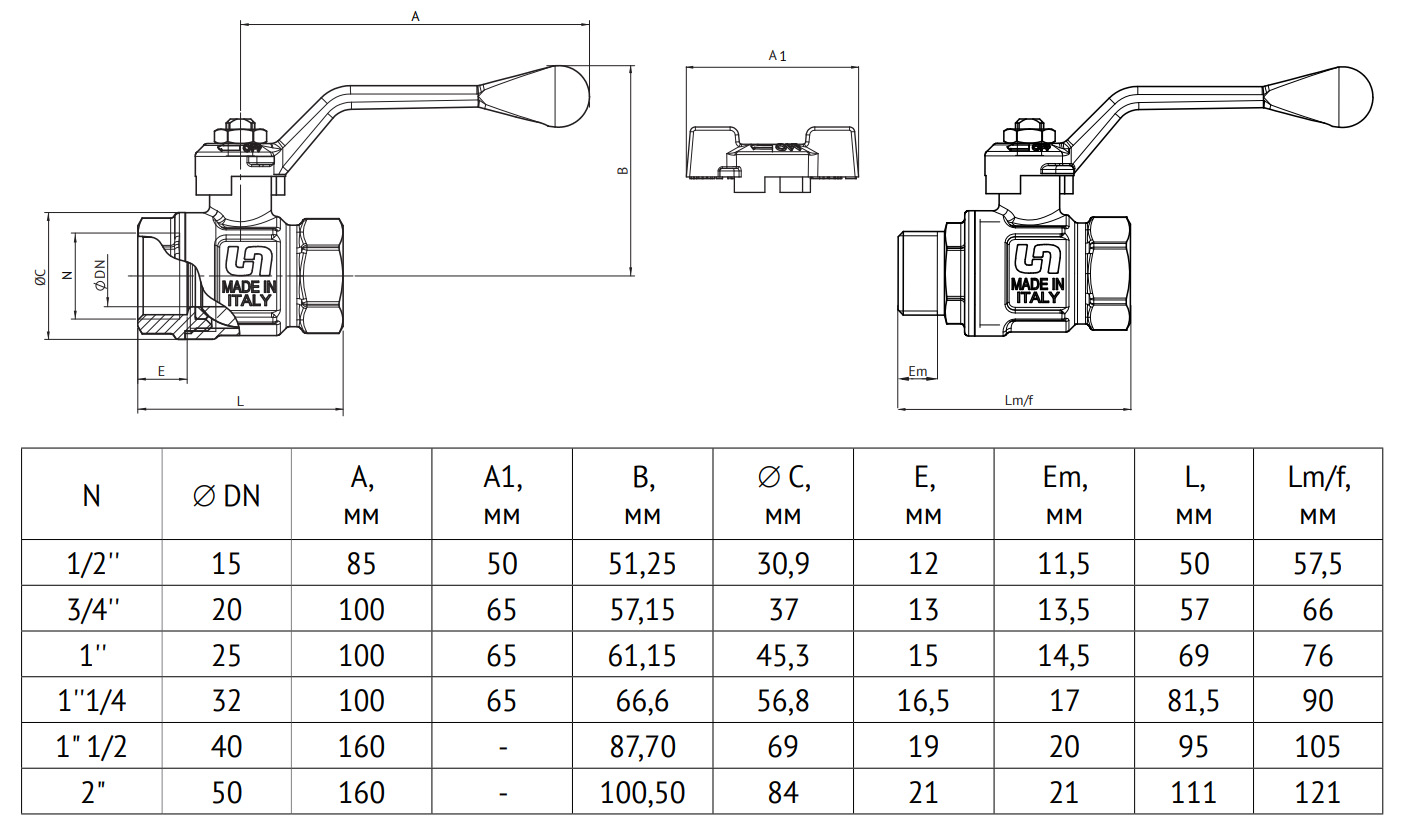 Кран шаровой НВ 1/2" UNI-FITT полнопроходной рычаг с разъемным соединением