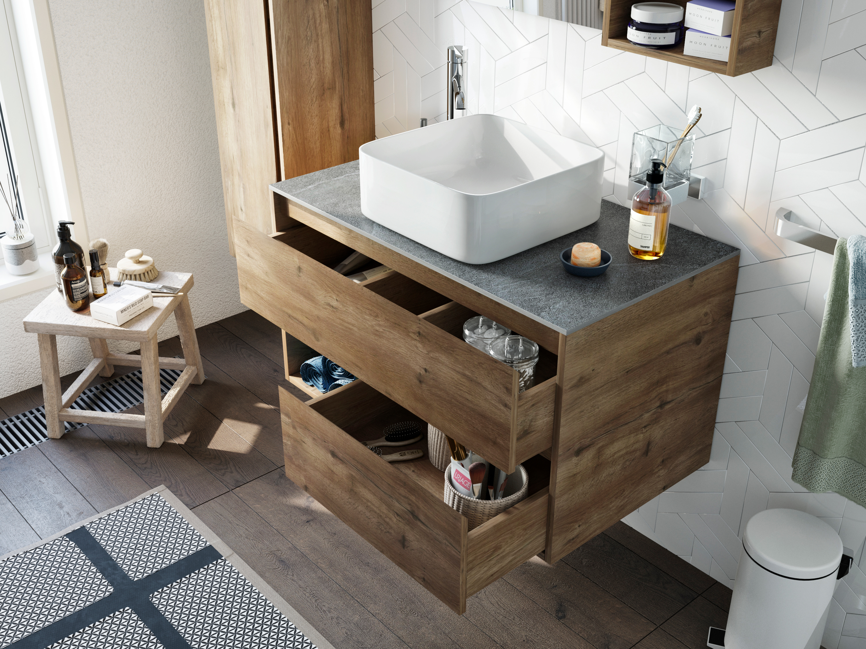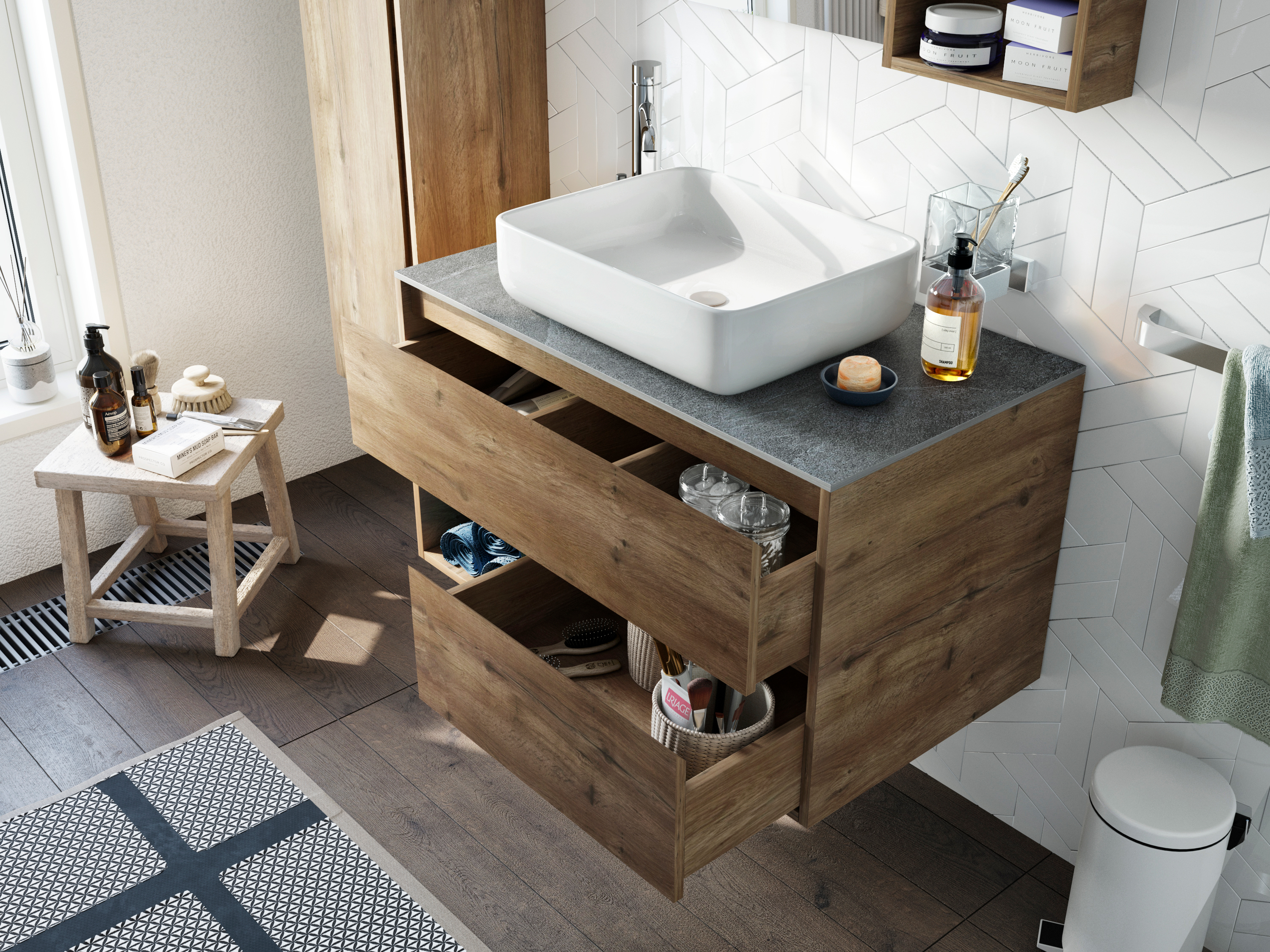 Тумба с раковиной STWORKI Карлстад 90 дуб рустикальный, роверелла, с отверстием для смесителя в столешнице