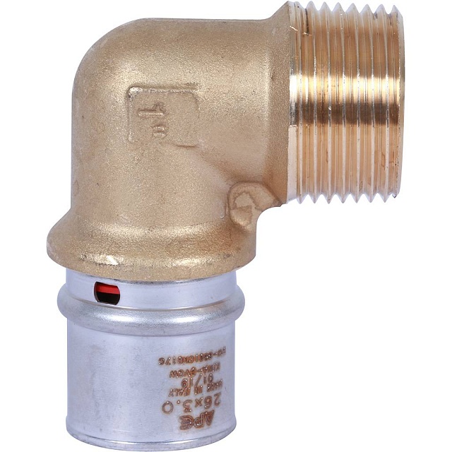 STOUT Угольник-переходник с наружной резьбой 1"х26 для металлопластиковых труб прессовой