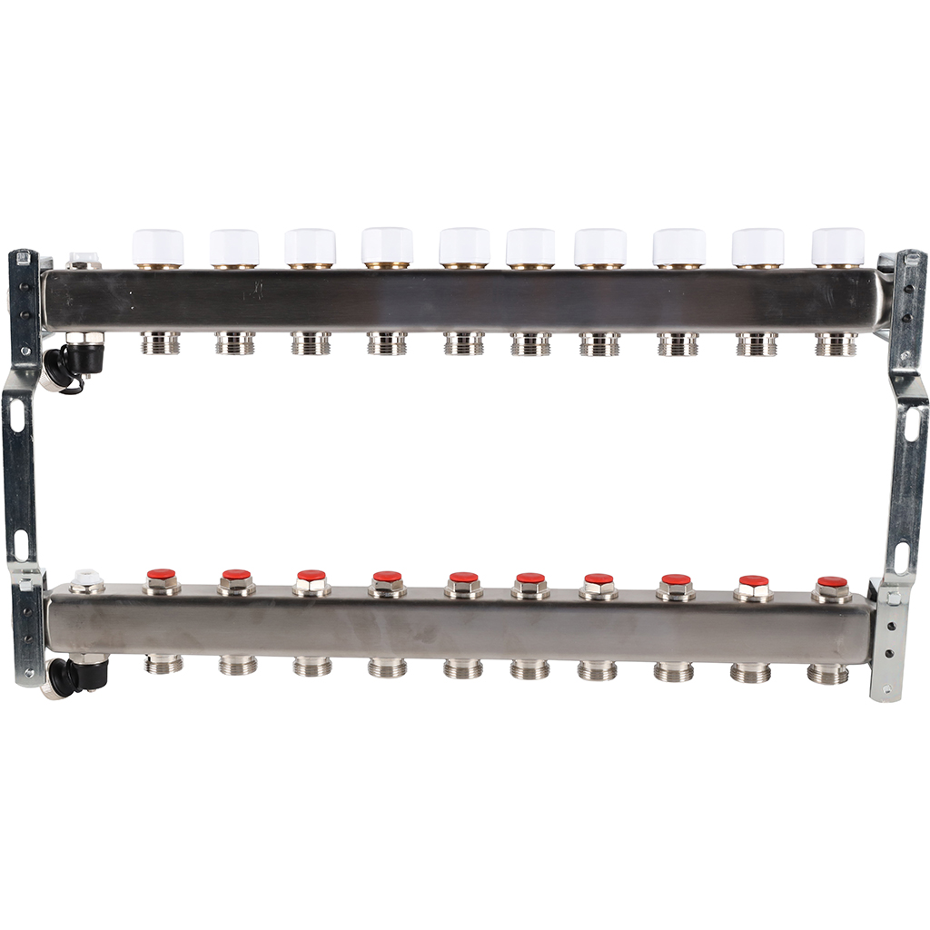 Коллектор без расходомеров, с клапаном, сливом, 10 выходов