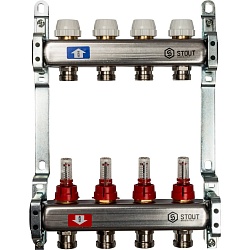 Коллектор STOUT с расходомером, 4 выхода