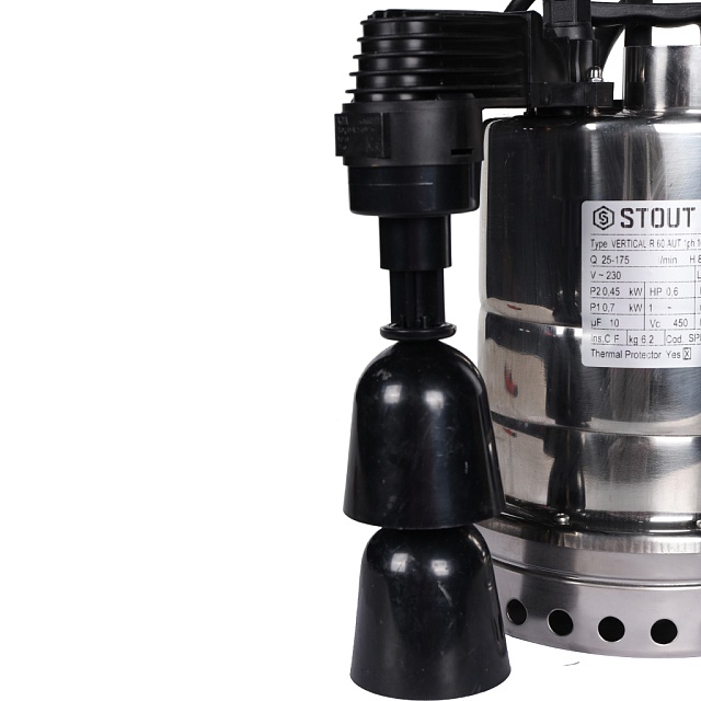 STOUT SPD-0003-200450 Насос дренажный, с вертикальным поплавком, кабель 10 м, 230V, Q=175 л/мин, H=8,8