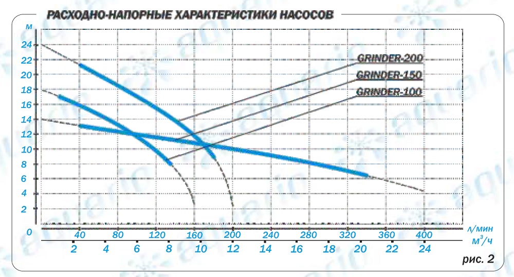 Насос предназначен для перекачивания канализационных стоков от частных домов, кафе, гостиниц. Наличие режущего устройства позволяет насосу измельчать возможные волокнистые включения, содержащиеся в перекачиваемой жидкости, не допуская блокировки насоса.
