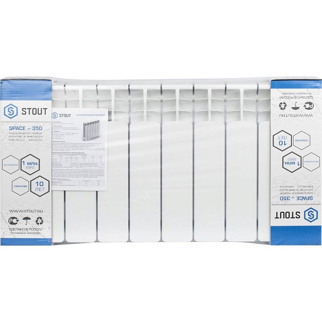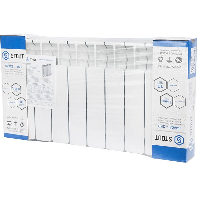 STOUT Space 350 10 секций радиатор биметаллический боковое подключение RAL9016