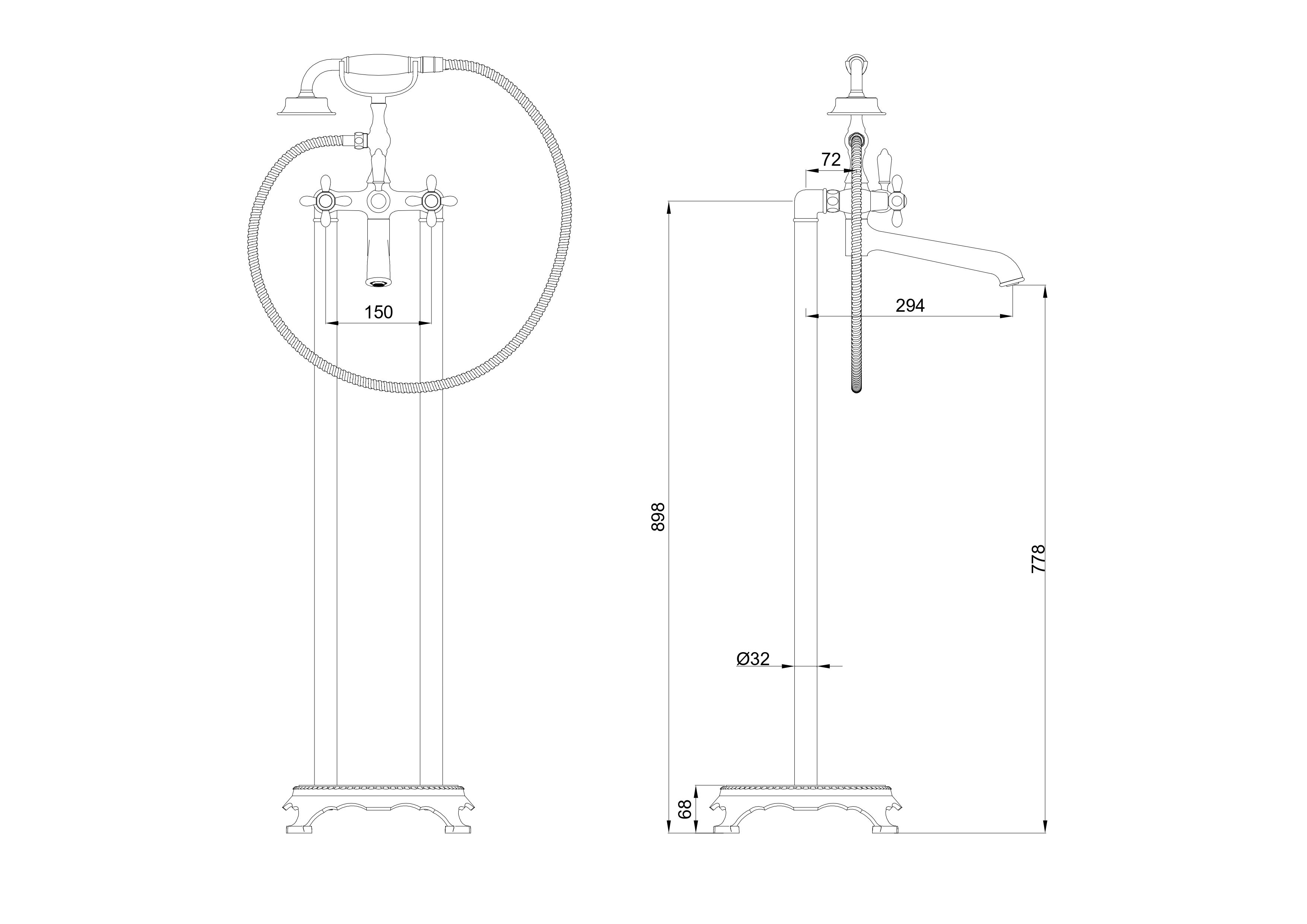 Смеситель для ванны напольного монтажа WONZON & WOGHAND RETRO, Темный графит (WW-88649020-BGM)